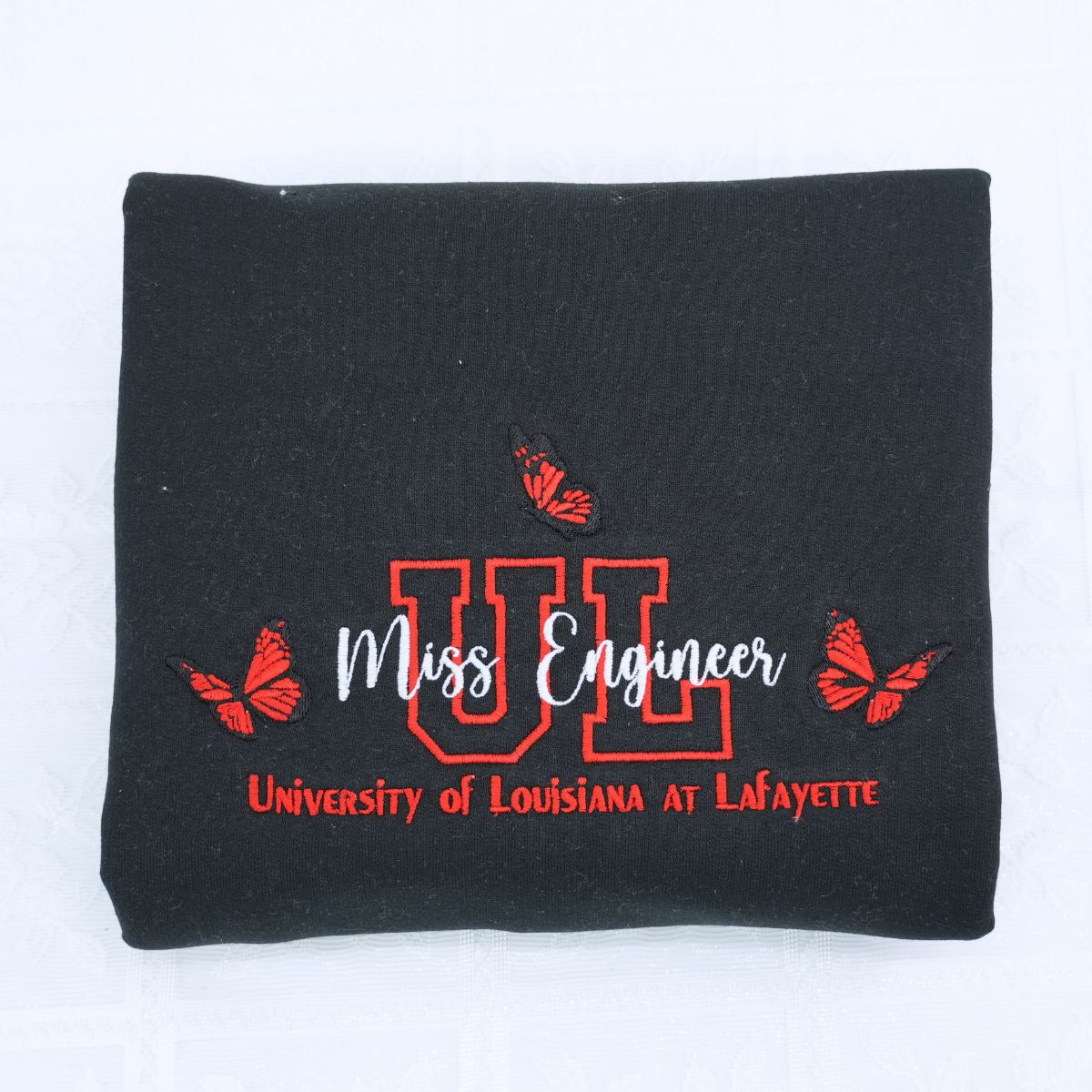 Once approved, the design is embroidered onto the sweatshirt and shipped to you via USPS.