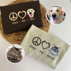 Discover our Custom Embroidered Peace Love Pet with Names Sweatshirt, the ultimate gift for pet lovers! Lovingly crafted and intricately embroidered, this Sweatshirt is a wonderful way to show your affection for your beloved pet. Perfect for Valentine's Day, Mother's Day, Father's Day, Christmas, or any special celebration, our pet Sweatshirt promises to bring joy. Indulge yourself or surprise a pet lover with this thoughtful and unique present.